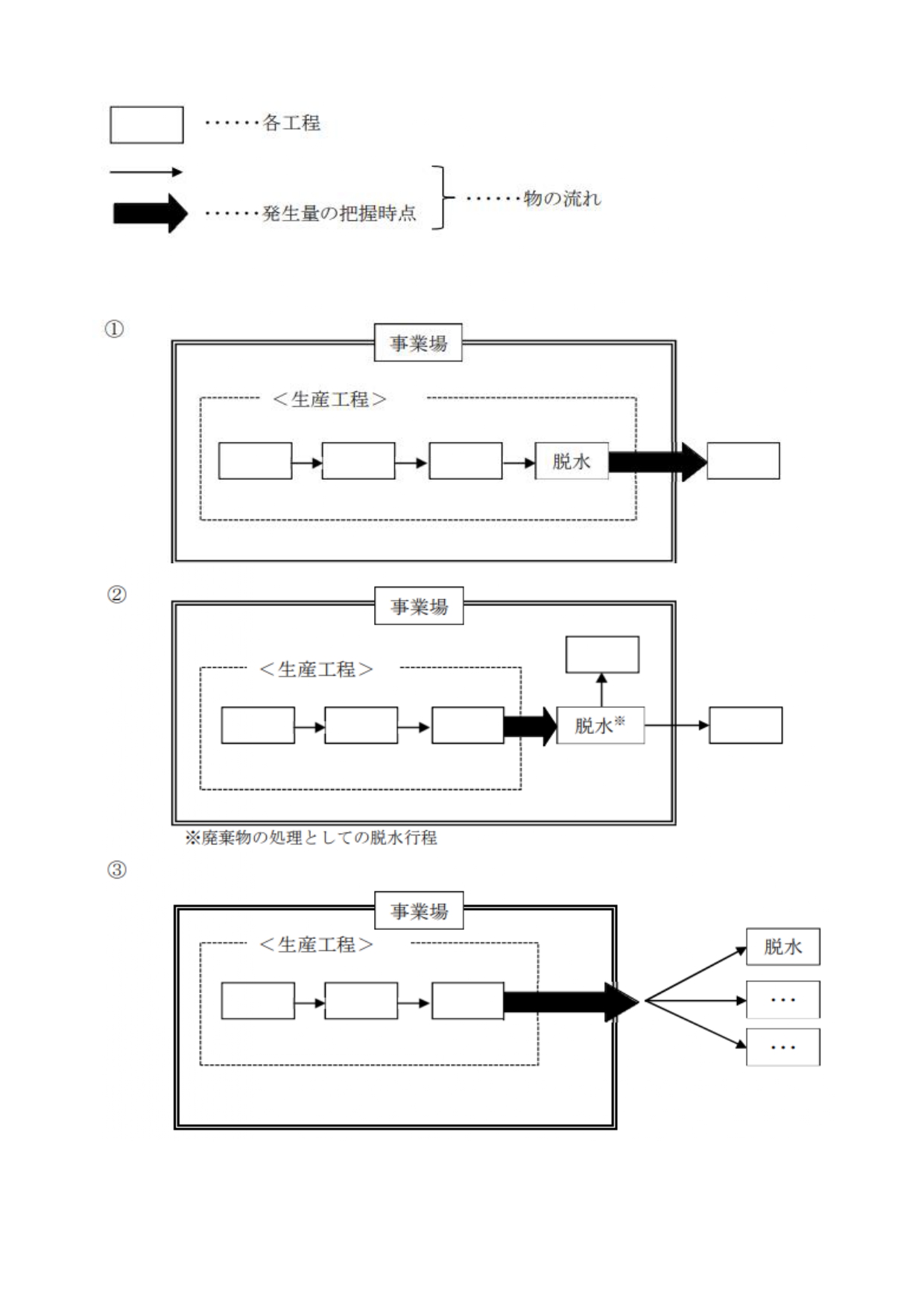 ③のように事業場内で脱水や乾燥等の減量工程を経ずに発生する場合は、そのままの重量を発生量とします。